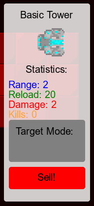 - Clicked | Is true when the tower is clicked, this shows the Tower Upgrade Menu with statistics about the tower and has the upgrade and sell buttons.