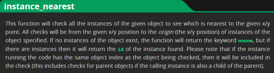 GameMaker Manual (yoyogames.com) | instance_nearest()